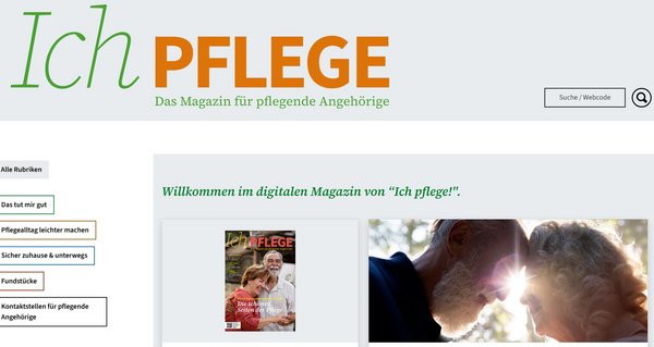 “Ich pflege” gibt es ab sofort als digitales Magazin. Pflegende Angehörige können so noch besser die Inhalte des Magazins nutzen: optimiert für das Lesen auf dem Smartphone, übersichtliche aufbereitet durch Rubriken wie „Das tut mir gut“ oder den „Pflegealltag leichter machen“ und interaktive Elemente geben noch mehr Hintergrundinformationen.