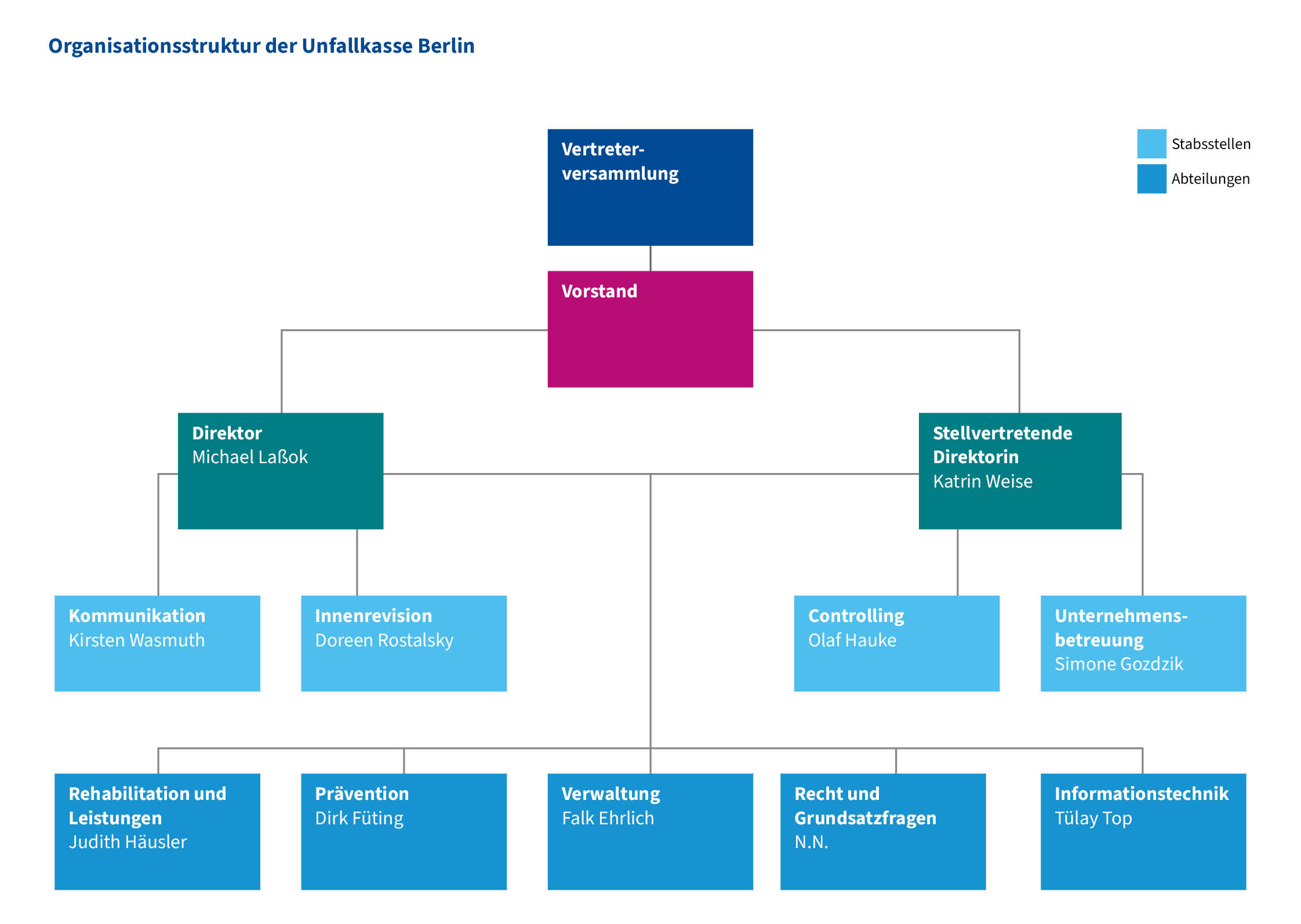 Des Weiteren ist die Unfallkasse Berlin in Stabstellen und Abteilungen organisiert: